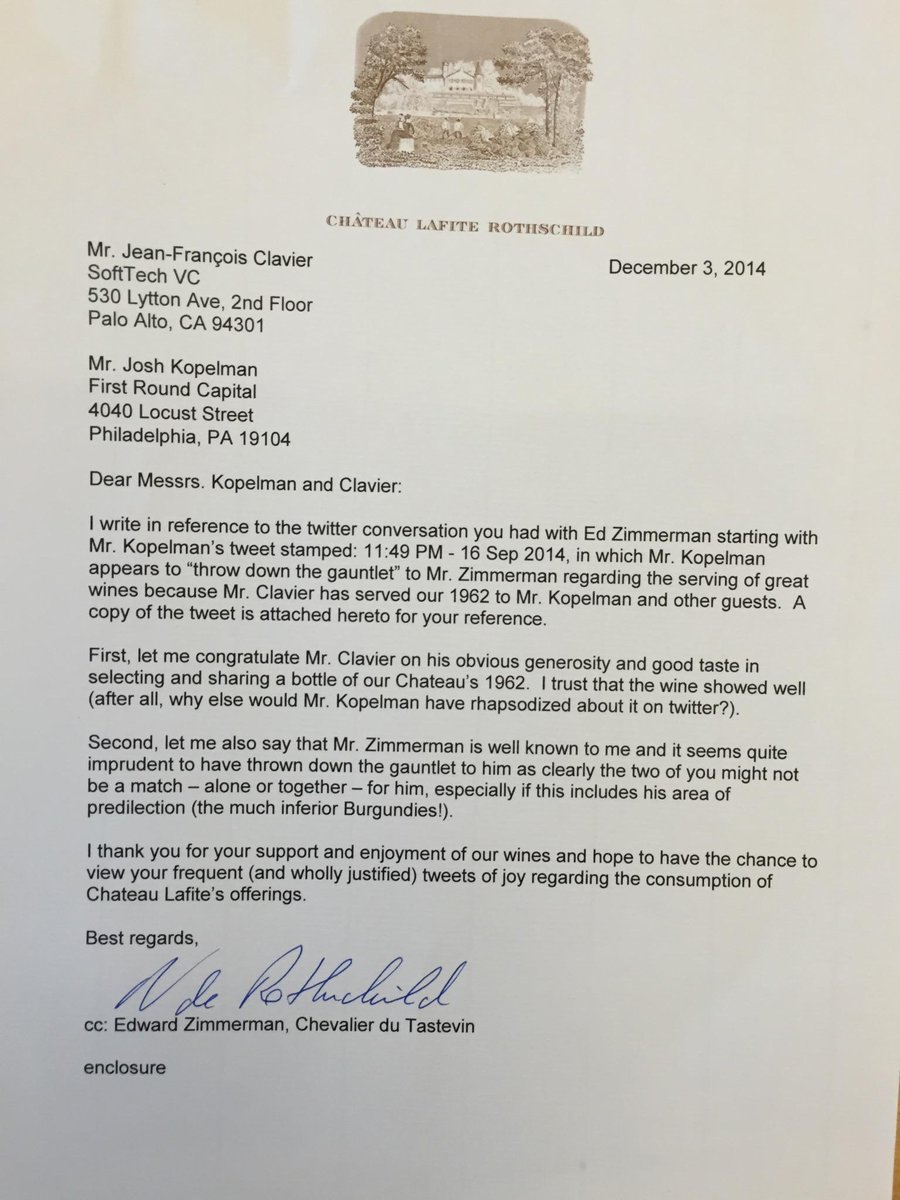 Check out this letter from Chateau Lafite Rothschild in response to